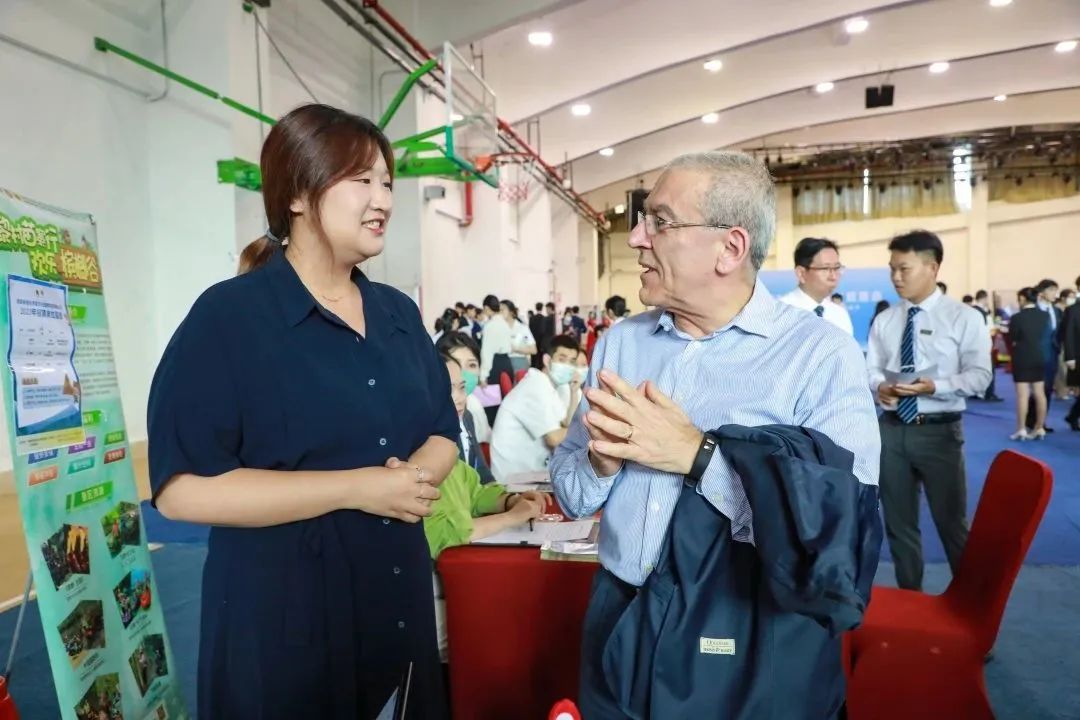 小组专家艾伦·纳扎尔与参加学院实习就业双选会的企业代表交谈