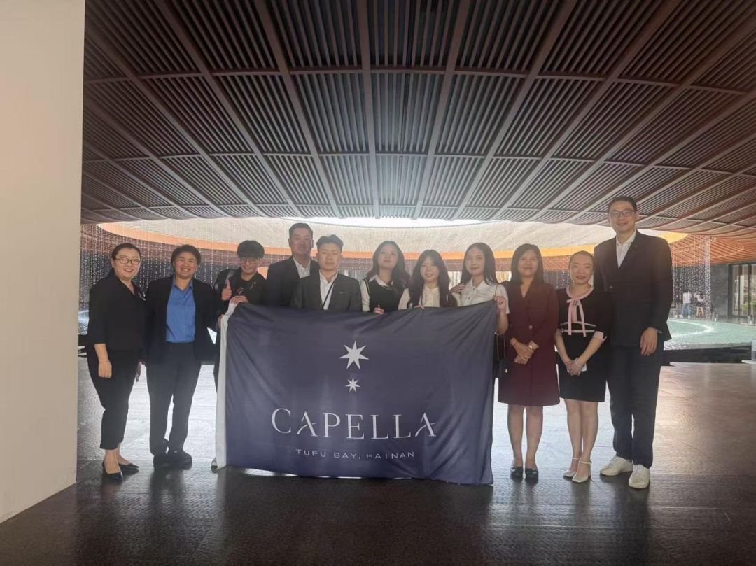 泰国师生团队实地参观了学院实训酒店和运营场所,对学院沉浸式教育理念、“前店后校”的教学模式、“教学运营一体化”创新实践表示高度认可。两校教师还围绕课程设计、产教融合等话题展开交流。泰国研学团队还前往学院合作酒店——海南土福湾嘉佩乐度假酒店和三亚·亚特兰蒂斯酒店进行深度考察。在海南土福湾嘉佩乐度假酒店,师生们体验了“东方美学遇见南洋风情”的设计哲学与定制化服务;三亚·亚特兰蒂斯酒店的“海洋文化+主题娱乐”复合型运营模式引发热烈交流。两家国际品牌酒店的前沿实践,为学生们提供了全球视野下的行业洞察。泰国都喜天丽学院(Dusit Thani College)是泰国教育部认证的本科院校,由都喜国际酒店集团创立于1993年,专注旅游与酒店管理教育。2015年学院成为瑞士洛桑酒店管理学院认证成员院校。