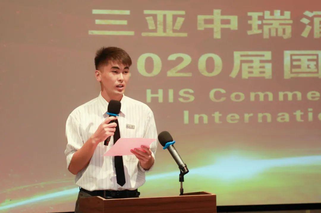 国际学生艾迪代表全体毕业生发表感言,他认为三亚中瑞不仅仅教会了他汉语知识,更让他感受了文化和情怀。感谢各位老师的辛苦付出,感谢老师们在最困难的时候给予他们的帮助。