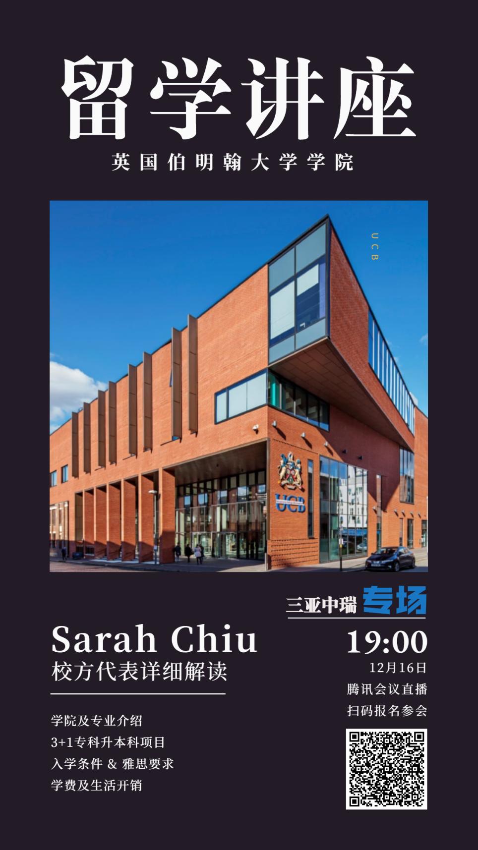 线上留学讲座预告 | 英国伯明翰大学学院专升本项目