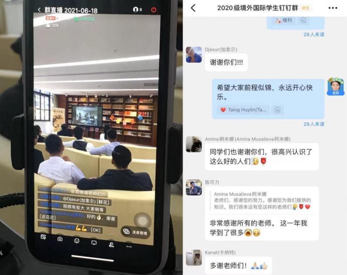 发言结束后,与会人员一同观看了国际交流中心制作的纪念视频。伴随着悠扬的音乐,国际学生们一年来的生活点滴一幕幕呈现在眼前。从入学到离校,从学习到生活,从汉语课到文化活动,老师和同学们跟着这架“时光机器”重温了这一年来充实的学习时光。
