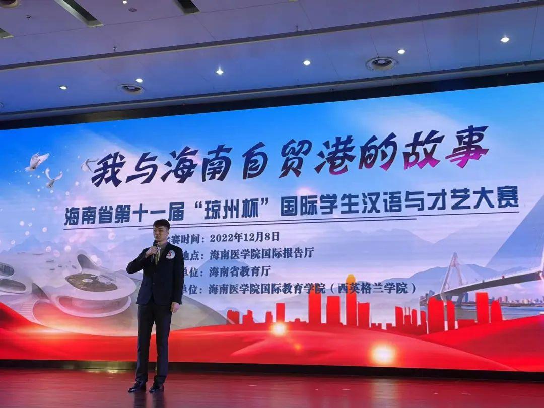 12月8日,海南省教育厅主办的第十一届“琼州杯”国际学生汉语与才艺大赛在海南医学院举办。我院2020级酒店管理专业国际学生程皓天代表学院参赛并荣获三等奖。