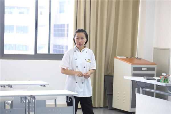 学院QLF大使作自我介绍。他们从左至右分别是专业教研部前厅组夏祥炜老师、英语组郭宏老师、餐服组龚光彬老师、部长助理钟文梓老师以及前厅组万义娟老师。
