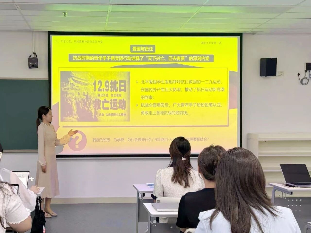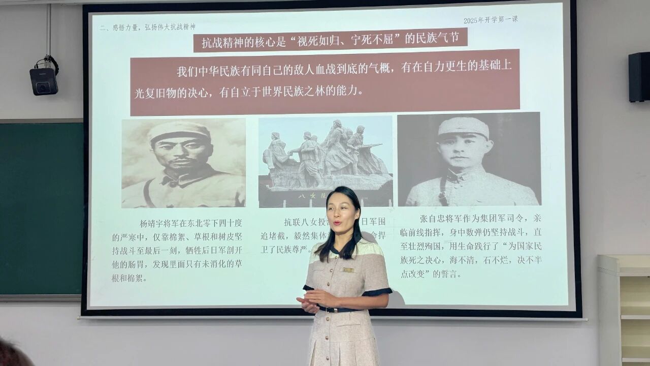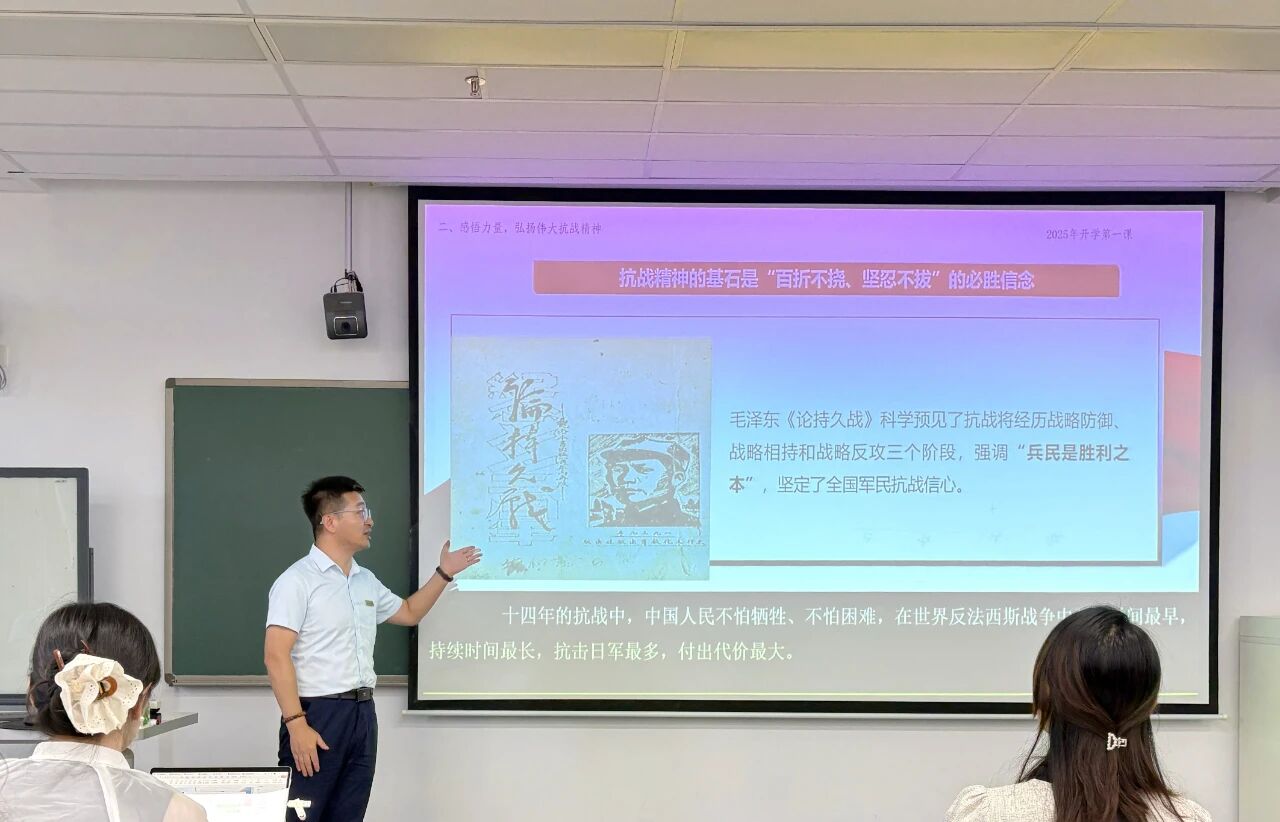 思政教师孟煜鑫着重强调了抗战精神的理论价值和时代意义。他提出要深入阐释《论持久战》的战略智慧、抗日民族统一战线的政治远见,通过对比不同抗战路线的本质差异,帮助学生理解中国共产党在抗战中的中流砥柱作用,领会抗战精神对当代中国建设与民族复兴的启示。