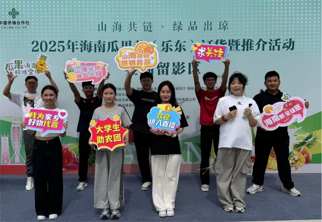 活动期间,学院联合海南省供销社组建“大学生助农团”,深入海南多个市县乡镇,运用新媒体营销、直播电商等技术,为菠萝蜜、火龙果、芒果等30余种特色农产品打造数字化销售链路。团队通过创意短视频、话题预热、沉浸式直播等创新形式,将农业科普与消费场景深度融合。直播间内,学生以“风土故事”为切入点,讲述农产品种植溯源、品种特色等文化内涵,结合趣味抽奖、知识问答等互动环节,推动订单转化率达行业前列。