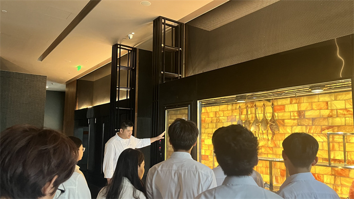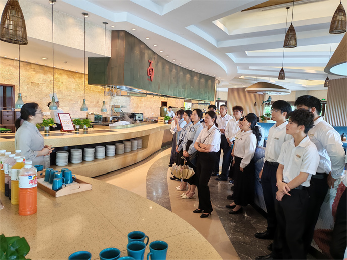 在海南土福湾嘉佩乐度假酒店,从兰亭中餐厅、中厨房的中餐技艺,到丝路餐厅西厨房、泰餐厅及饼房的异域风味,多元餐饮空间的参观让学生沉浸式感受全球美食文化的交融,拓宽了烹饪视野。厨艺总监关于厨房运营的专业分享,更是直击烹饪专业核心,为学生揭开高端酒店厨房管理的神秘面纱,使学生对厨房运营流程有了更清晰的认知,为专业技能提升与职业规划明确了发力点。