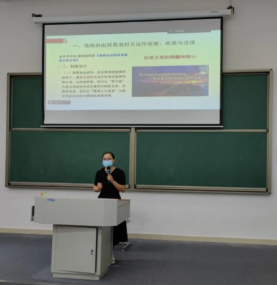 普法宣传活动结束后,海棠区司法局特聘律师肖纪连,为广大师生作了题为《海南自由贸易港封关解读》专题讲座。肖律师分别从海南自由贸易港“一线放开、二线管住”制度架构,海南自由贸易港“六大自由”的基本思路,封关之前海南自由贸易港的实践探索,海南自由贸易港总体发展状态,封关运作后海南自由贸易港政策优势与发展研判等方面进行分析解读,描绘了海南自贸港未来发展的美丽画卷。
