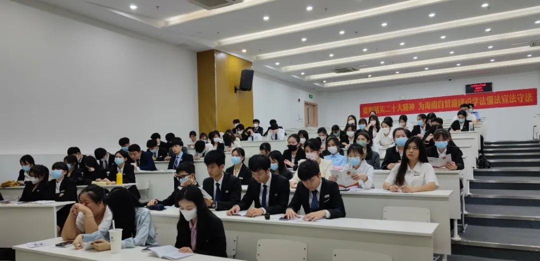 为贯彻落实党的二十大精神,坚持全面依法治国,推进法治中国建设,提高我院师生学法自觉性和用法能力,11月24日下午,三亚中瑞与海棠区司法局联合举办了《贯彻落实二十大精神,为海南自贸港建设学法懂法宣法守法》专题教育活动。