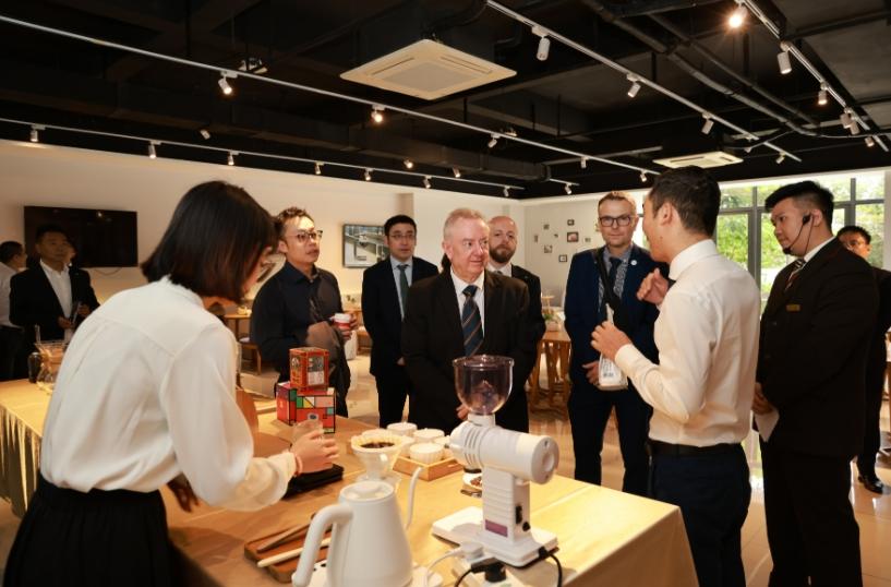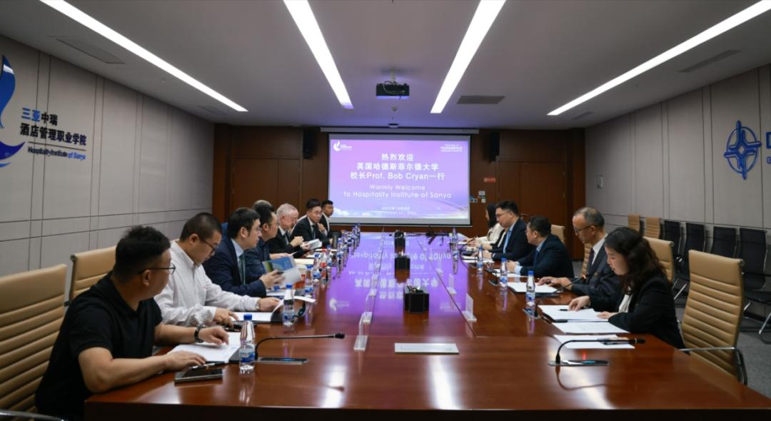 Bob Cryan教授对我院的热情接待表示诚挚的感谢。他介绍了哈德斯菲尔德大学悠久的办学历史,丰富多样的课程设置,卓越的学术声誉和创新性的科研环境。他希望两校能够优势互补,资源共享,实现合作共赢。Bob Cryan教授一行参观了学院品酒实训室、实训厨房、形体实训室、礼仪实训室、形象设计实训室、飞机模拟舱实训室、咖啡吧实训室等教学实训场地。