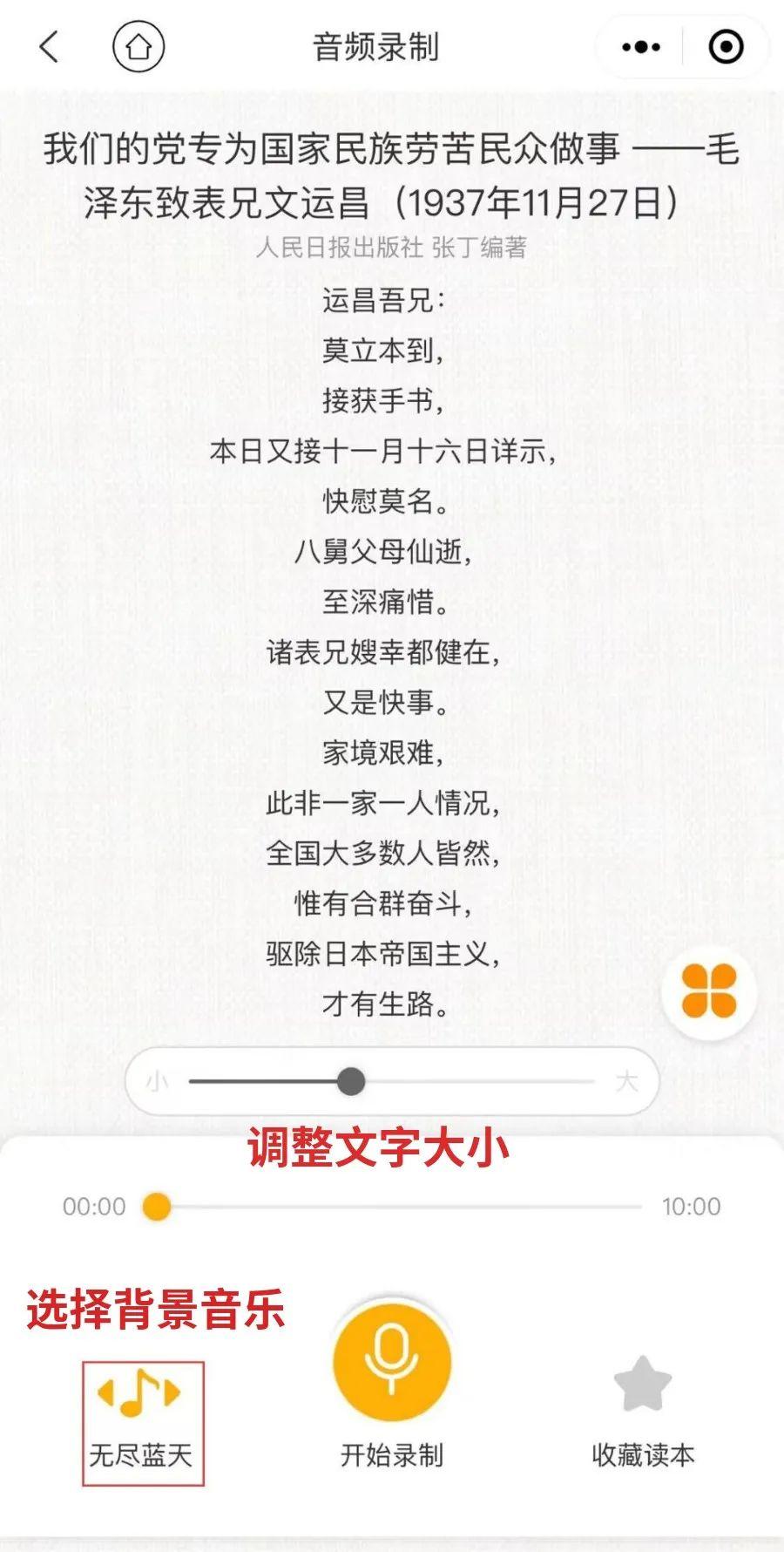 第一步:识别二维码进入博看朗读小程序,录制作品并保存;