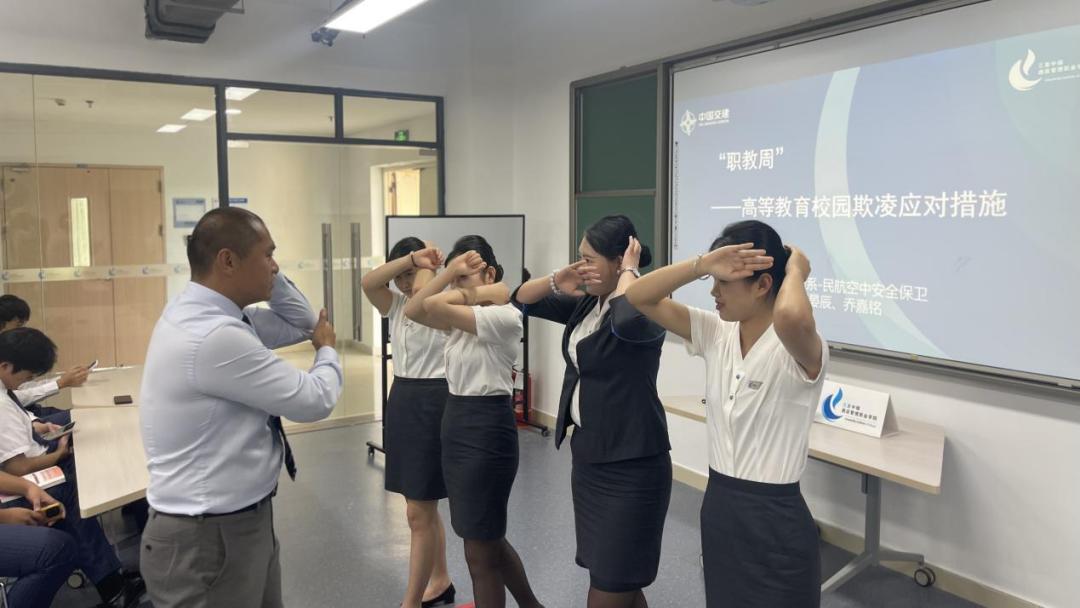 一技在手 一生无忧 丨三亚中瑞旅游管理系民航空中安全保卫专业开展“学用同行”《高校学生应对校园欺凌措施》演练