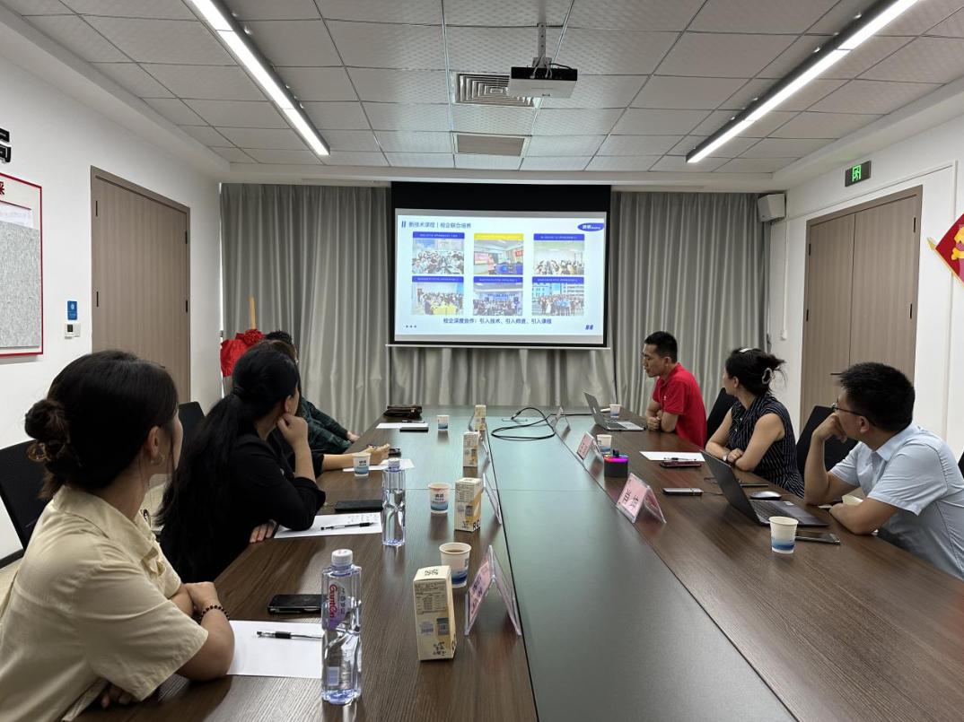 在区域经理李毅飞的带领下,走访团队参观了公司展示区,详细了解了新道科技的创办背景、核心产品、服务产业以及未来方向,调研团队深刻体会了创新技术与行业应用融合发展的新态势,李毅飞进一步介绍了新道科技在云计算、大数据、人工智能等创新技术领域的研发和应用情况,报告了公司在数字经济背景下产教融合培养数智化人才等方面的探索与实践,阐述了在新的校企合作、专业共建模式下,开展人才培养方案修订、师资培养、实习实践、实训环境建设、教学评价、就业服务和云平台服务等思路与路径。未来财务教研室在教学上将强化数据处理能力的培养、融合实践与理论教学、跨学科交叉培养。