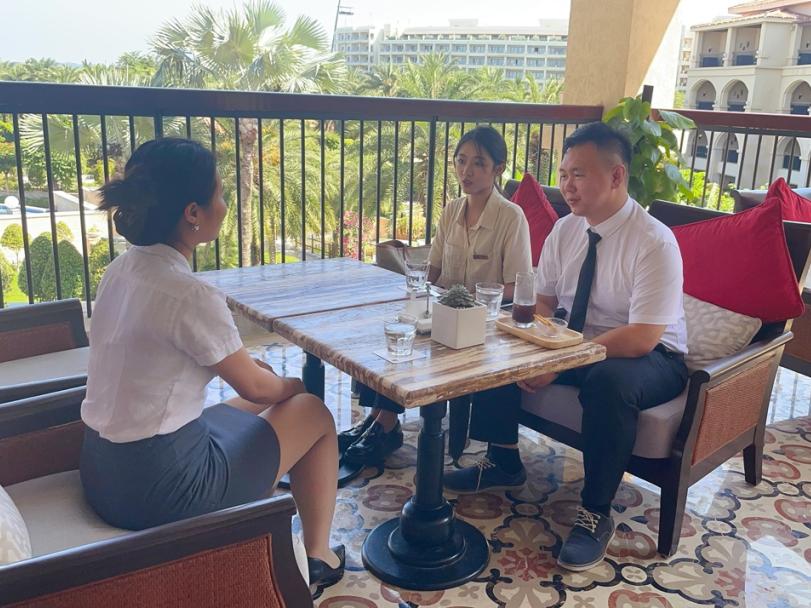 经济与管理系财务教研室专任教师刘泽奇、解禹来到三亚JW万豪&喜来登度假酒店开展调研工作,调研团队与酒店人力资源部经理陈洁玲做了深度的探讨。