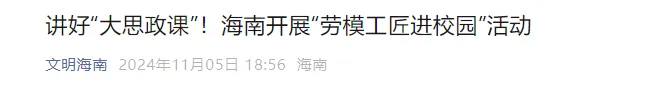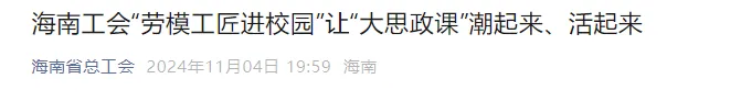 点击查看《海南工会“劳模工匠进校园”让“大思政课”潮起来、活起来》