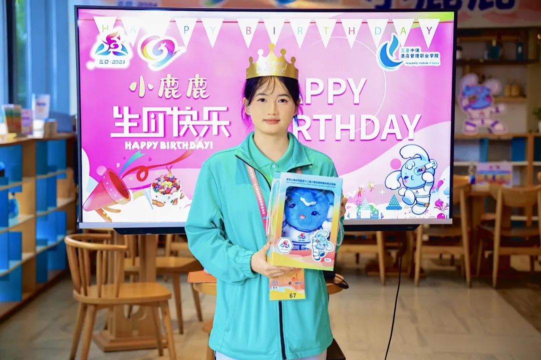11月26日,民族大联欢活动结束后,悦信明日酒店保障专班为志愿者吴思娴举办了生日会,专班为她准备了生日蛋糕和吉祥物,成员和其他志愿者们纷纷送上祝福。悦信明日酒店保障专班客房会务组组长、对点单位市资规局陈科长表示,“在赛事期间,我们专班的志愿者们早出晚归,以其无私的奉献精神和满满的热情,为运动会的顺利进行贡献了巨大的力量。借此机会,专班向每一名志愿者表达了感谢,并祝愿他们的未来永远充满阳光和活力。”