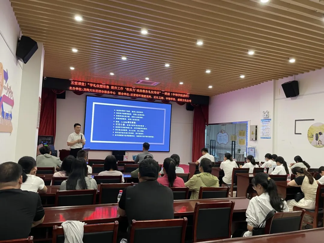 5月12日,学院学生工作处校园文化建设教师黄源走进海棠湾龙海大社区,为社区居民及职工带来了一场主题为“职场与生活礼仪”的公益培训活动。此次活动旨在通过专业礼仪知识普及,提升社区居民和工作人员的职业素养与文明形象,助力社区和谐发展。