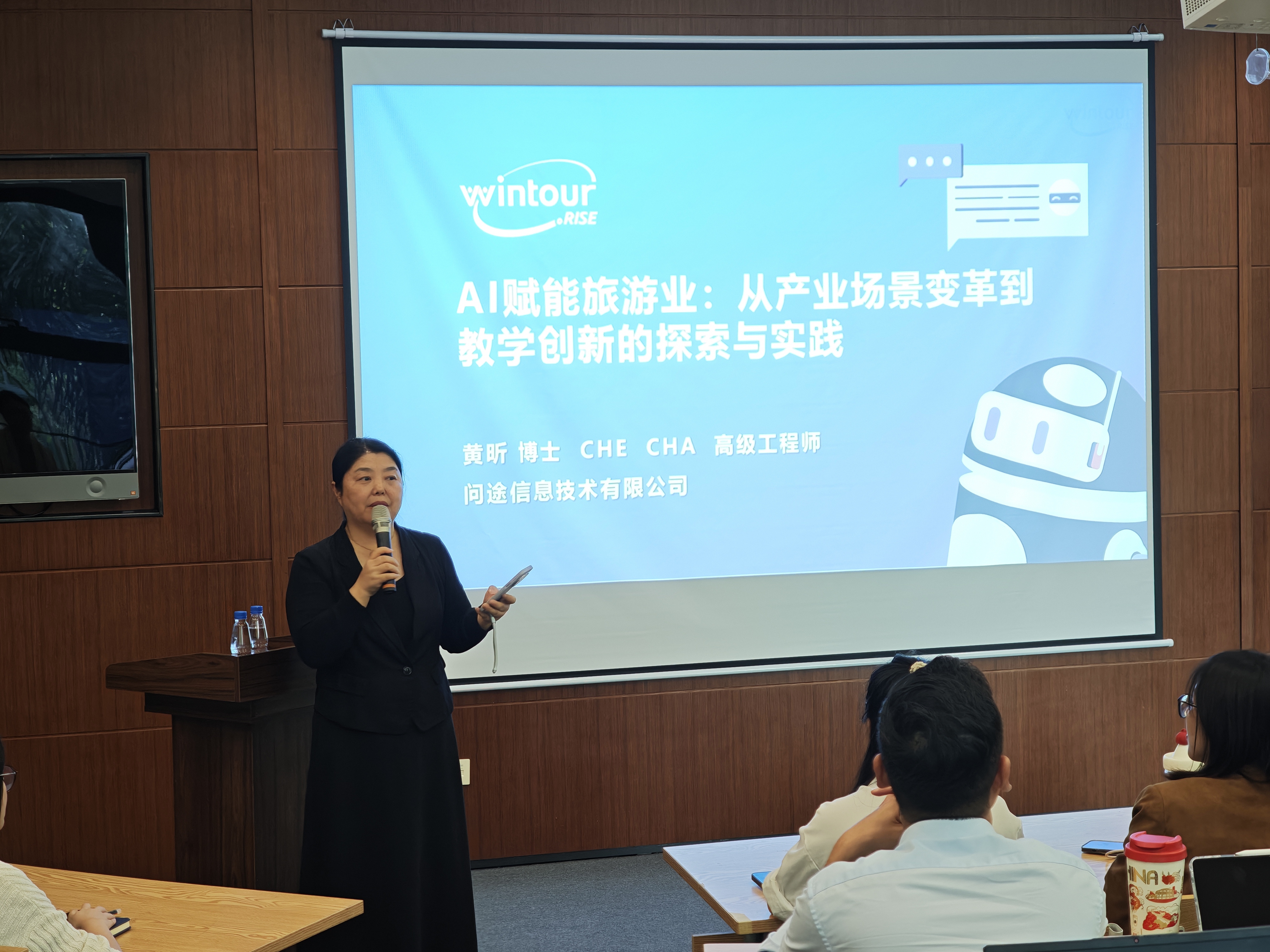 为提升教师数字化教学能力,11月12日下午,学院酒店管理系特邀问途信息技术有限公司董事长黄昕博士开展《AI赋能旅游业:从产业场景变革到教学创新的探索与实践》专题讲座。本次活动由酒店管理系主任于英丽教授主持,师生们齐聚一堂,共同探讨AI技术在旅游管理教育中的应用路径。