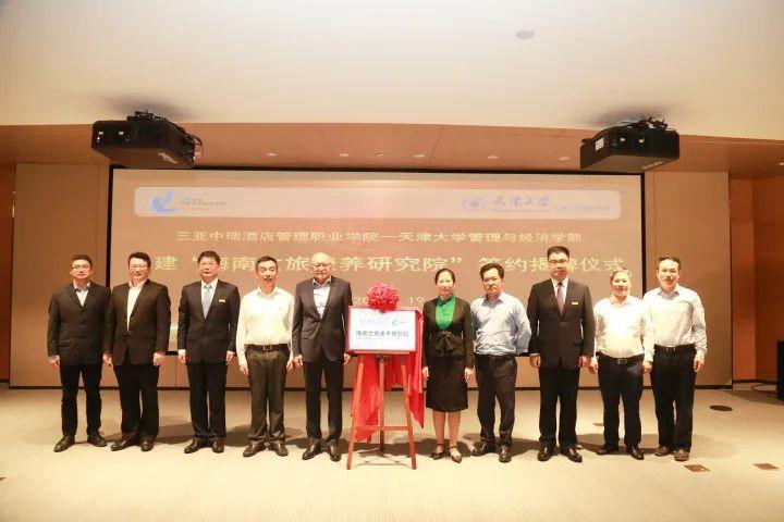 10月19日上午,三亚中瑞酒店管理职业学院与天津大学管理与经济学部合作签约仪式暨“海南文旅康养研究院”揭牌仪式在三亚中瑞酒店管理职业学院举行。天津大学原副校长寇纪淞、管理与经济学部党委书记马寿峰等相关领导及负责人,海南省教育厅高教处副处长苏永光,中国交建海南区域总部执行总经理刘彦,中交海洋投资控股有限公司市场开发部副经理周世勤及三亚中瑞学院相关领导及负责人出席此次仪式。
