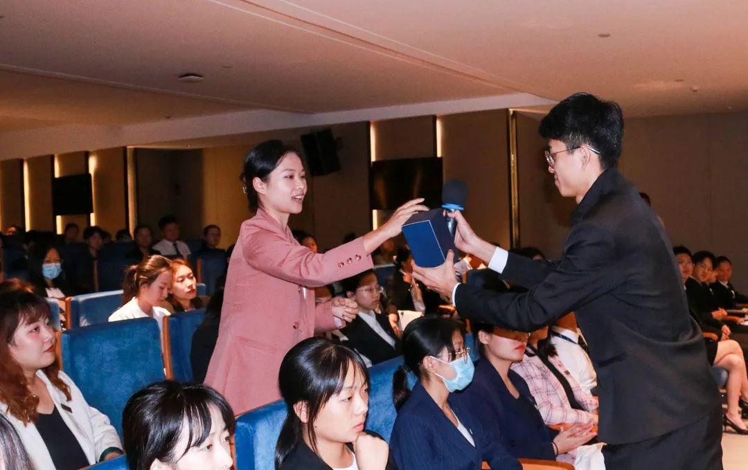 在两位嘉宾讲解完之后,同学们积极提出自己对此次实习、校招的疑问,嘉宾们一一认真回答。主动回答问题或提出问题的同学都获得了北京环球度假区独家定制的小礼物。