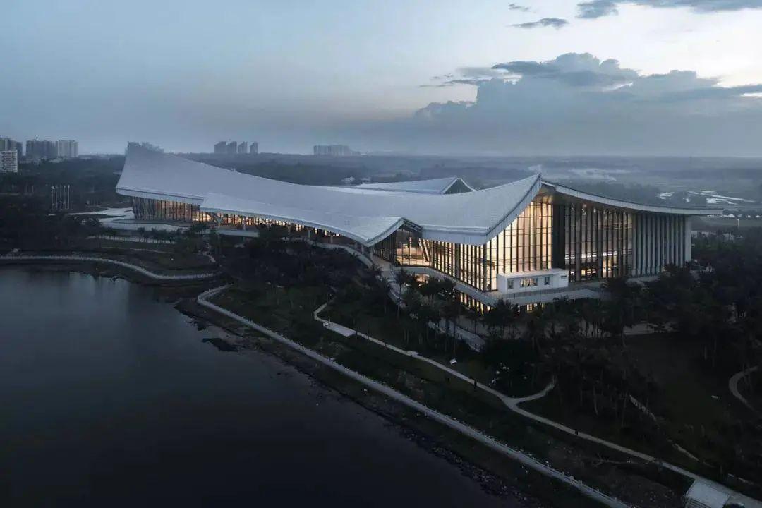建筑设计由何镜堂院士领衔的华南理工大学建筑设计研究院承担,融合现代美学风格与中国文化元素,取义“丝路逐浪,南海之舟”。