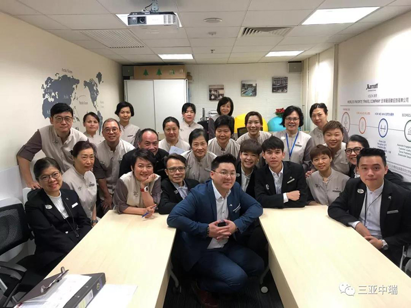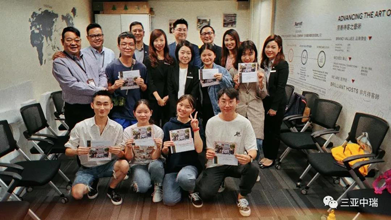实习结束后,香港海洋公园万豪酒店管理层与三亚中瑞同学们合影