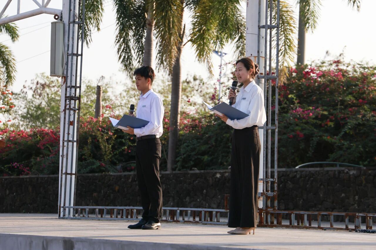 朗诵社团的学生代表带来《青春的回答》。同学们以饱满深情回望百年青年奋斗历程,抒发当代青年传承精神、勇担使命的赤诚之心,用铿锵誓言展现三亚中瑞学子志存高远、脚踏实地、逐梦自贸港的昂扬风貌。