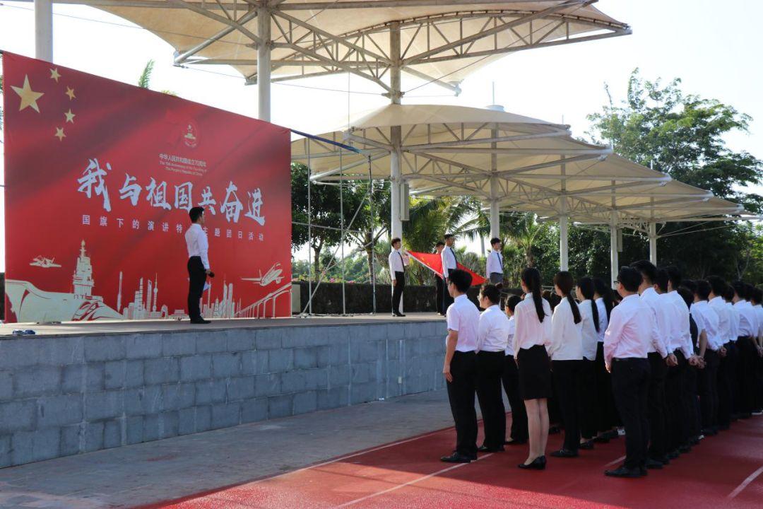 为庆祝中华人民共和国成立70周年,唱响“礼赞新中国、奋进新时代”的青春主旋律。11月20日,中交海投临时团委与三亚中瑞学院团委联合开展了“我与祖国共奋进——国旗下演讲”主题团日活动。