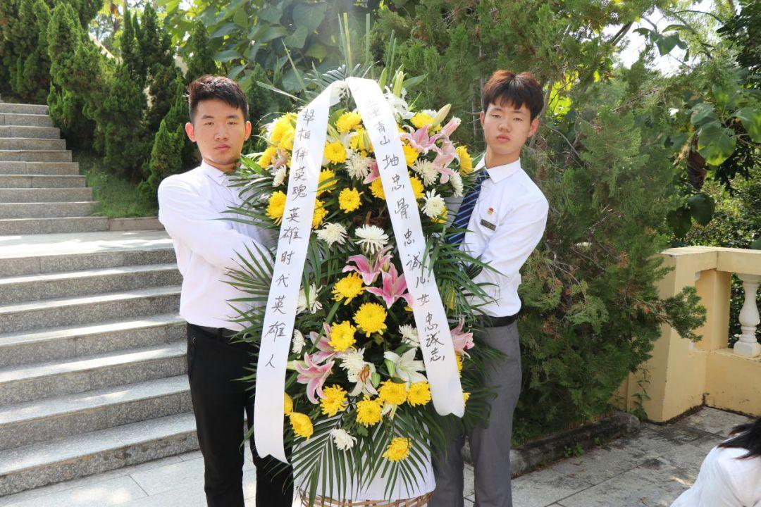 在三亚市崖州区梅山革命史馆,师生代表们瞻仰烈士纪念碑,敬献花圈,表达对革命烈士牺牲精神的无限敬佩。
