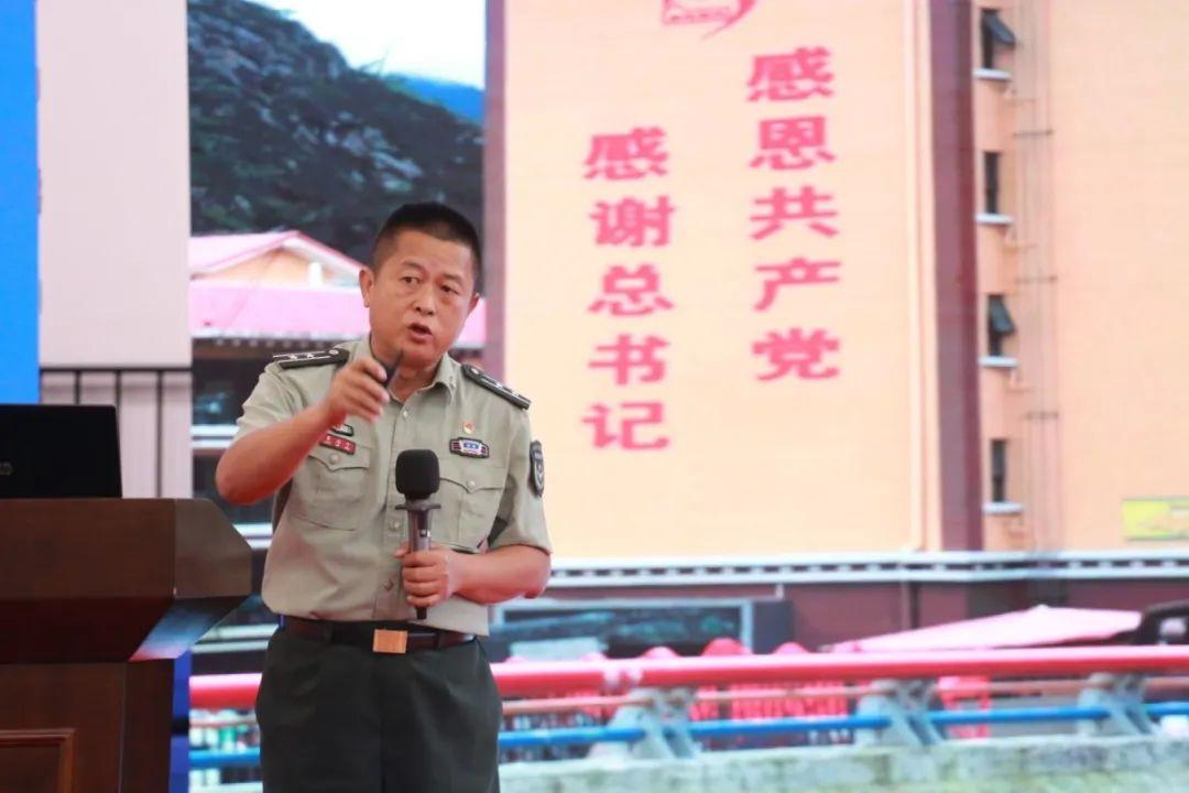 期间,黄海宁还与现场师生挥动国旗一起齐唱《强军之歌》,号召同学们要有使命意识和责任担当意识,将聪明才智融入强军梦想,献身国防事业,用青春谱写华丽人生篇章。