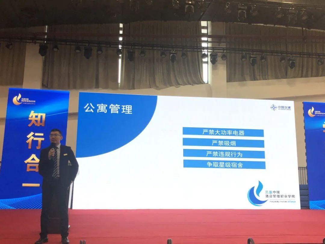 在10月10日的入学教育讲座中,学院学管办主任郭威利首先结合个人学生生涯及多年的工作经验,以生动的故事和案例告诉同学们大学生制定一个清晰目标的重要性,为大家全面解读了学院的规章制度,希望同学们在校期间能严格遵守校规校纪,做到恪守规矩,严于律己,并鼓励同学们积极参与校内外活动,丰富自己的课余生活,勇于创新,开阔视野,全面发展,努力提升综合素质,为海南自由贸易港建设贡献青春力量。