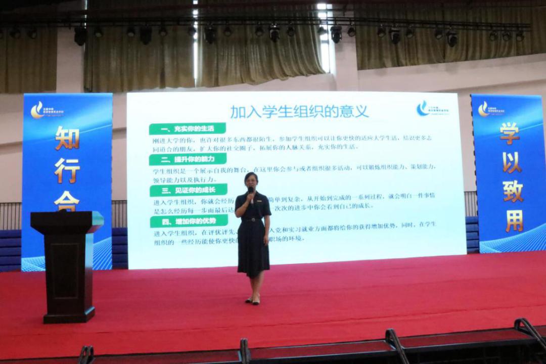 王岩老师还对团委领导下的各个学生组织做了详细的介绍,她建议新生们在保证优异成绩的前提下,加入心仪的学生组织,去体验多彩的大学生活,拓宽交际圈,学习他人优秀的一面,在学生工作中发挥自己的特长,与志同道合的朋友共同进步。