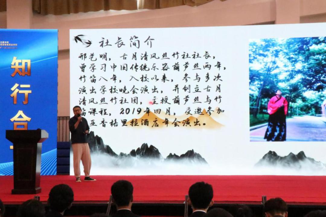 宣讲结束后,民乐社、乐棠乐队、舞蹈社、烘焙社、武林道场社及心理社团等社团的社长依次做了精彩的演讲。社长们妙语连珠,不时与台下新生互动,现场顿时活跃起来。
