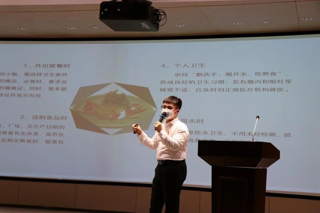 武昊天还列举了外出就餐、选购食品、个人卫生、饮用水的注意事项,并提醒同学们餐饮类的营业执照与餐饮服务许可证很重要,外出就餐应注意餐饮店是否有这两种证书,以315晚会的“土坑酸菜”事件为例,加强同学们提高对食品安全的重视。