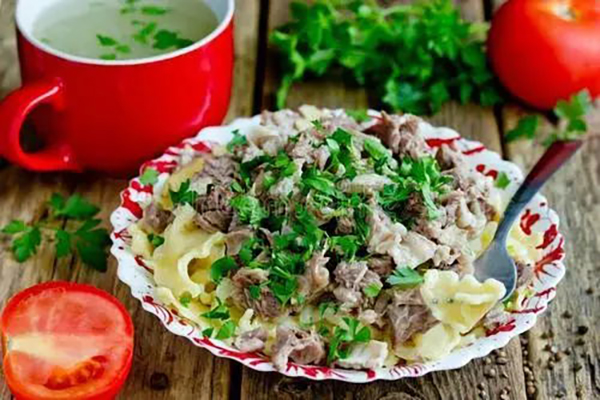 吉尔吉斯斯坦主要菜肴是Beshbarmak,做法是用马肉(有时是羊肉或牛肉)在肉汤中煮几个小时,然后撒上香菜等。