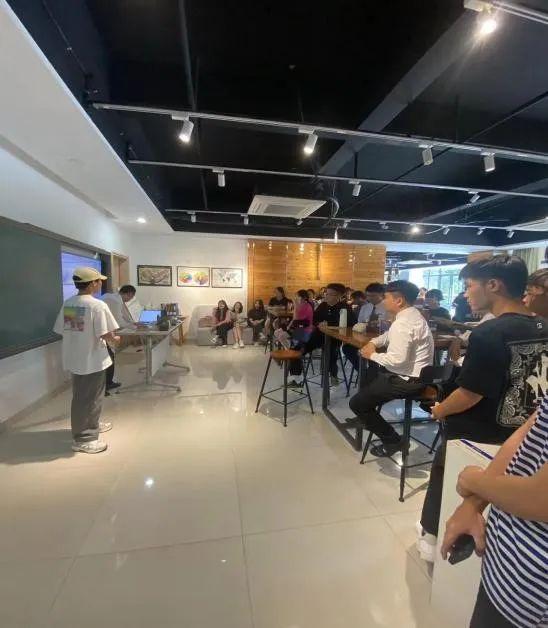 蓝志鹏学长在活动中向新同学们自我介绍,讲起来社团往年的活动、多姿多彩的社团趣事以及自己的实习经验。